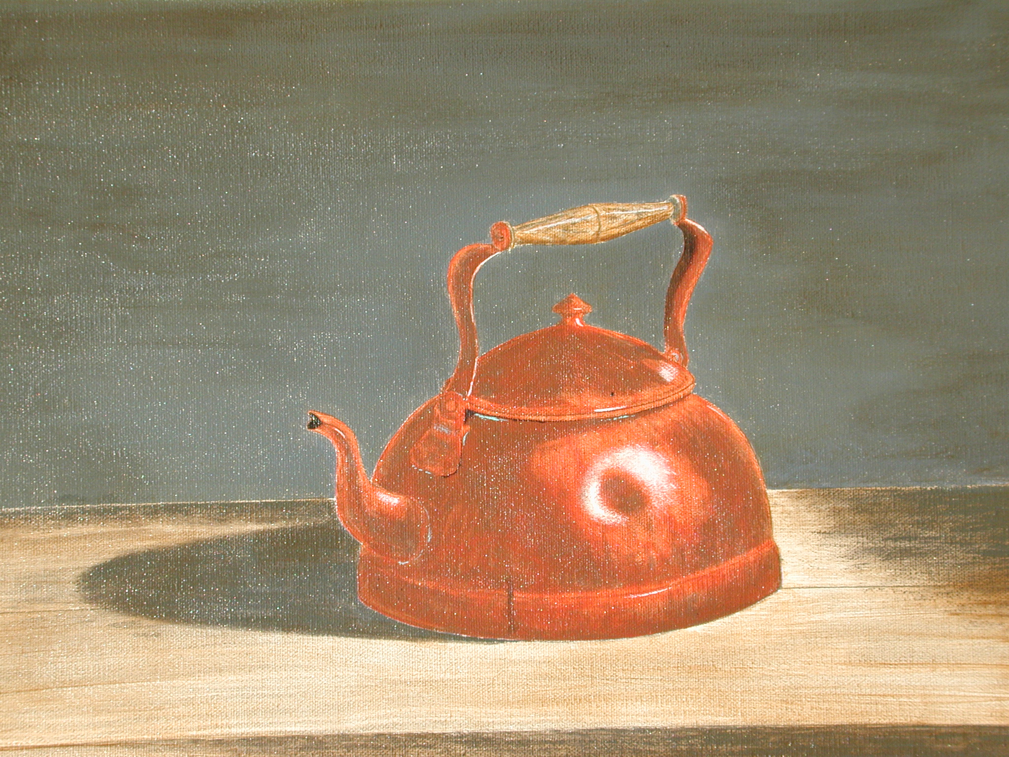 Red Kettle Study -2000 A still life study using old master glazing techniques. Acrylic on Canvas Dimensions (14x20 Inches) $145 Peach Study -1999 A study of peaches using translucent layering techniques. Acrylic on Canvas Dimensions (14x20 Inches) $165