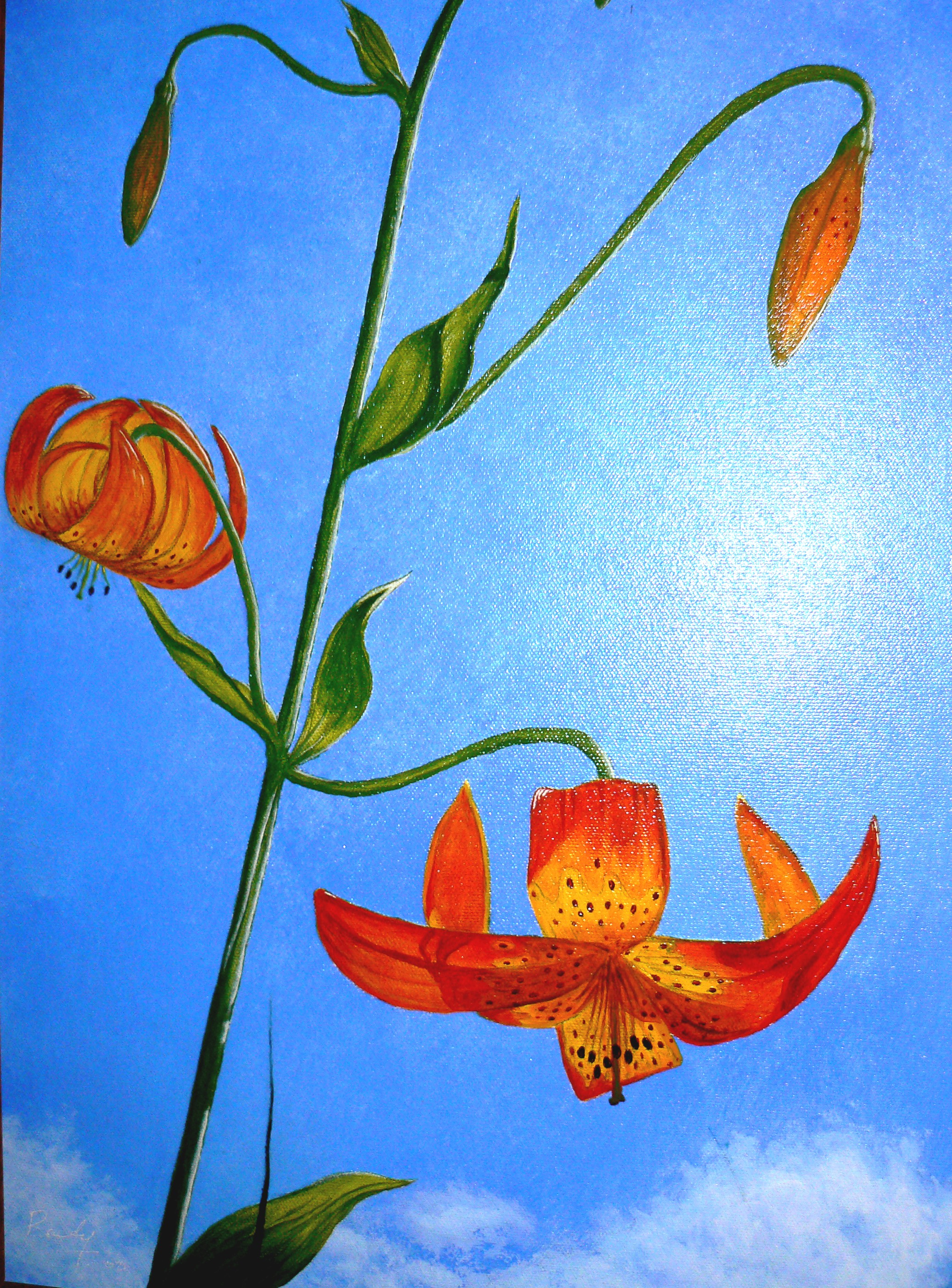 Wacky Iridescent Tiger Lily - 2003 Tiger lilies growing in Warner Valley. Acrylic on Canvas Dimensions (18x24 Inches) Private Collection